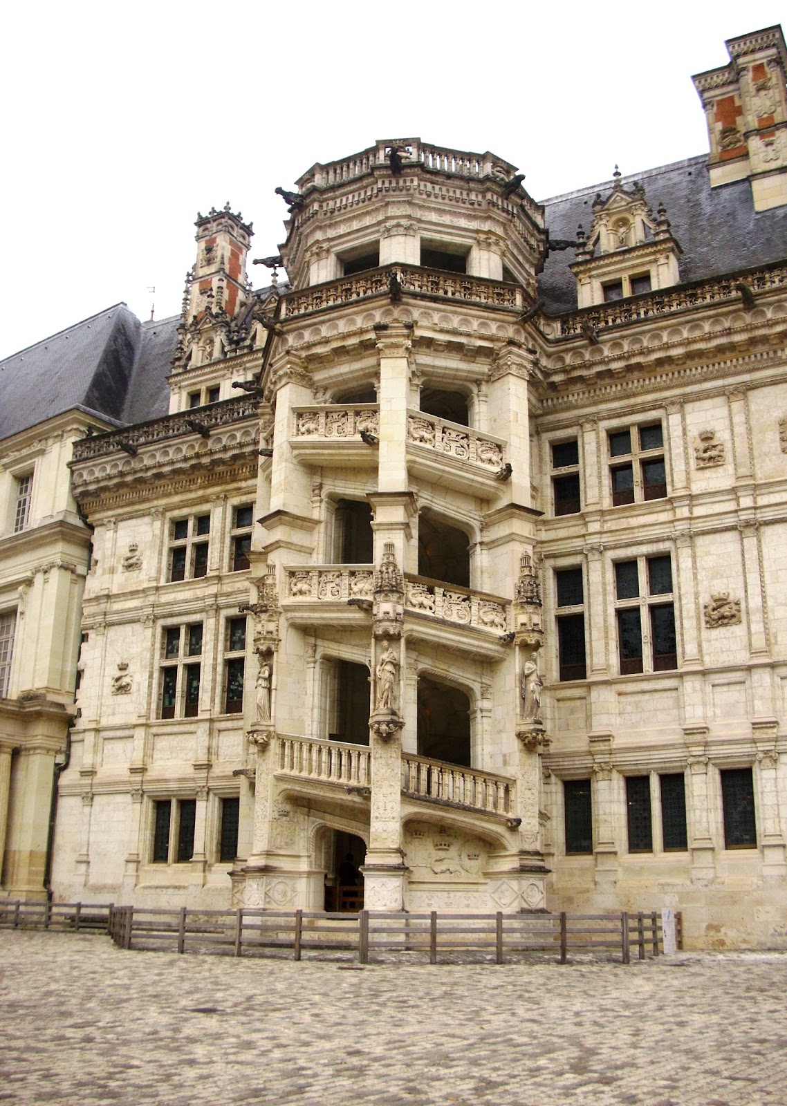 Not very far from Chambord, in the center of cute medieval style city of Blois, there is another Royal castle standing, the residence of 7 kings and 10 queens, Blois Castle, known as Chateau Royal de Blois. One of those kings was already known Francis I. The castle is also rich with rooms and staircases. The castle considers to be from 15th century, but in fact it contains buildings from 13th to 17th centuries. It’s classified as a Museum of France and has around 35.000 works of art. Time to time there are also a temporary exhibitions organized. The interior was awesome. Each room was decorated with paintings, sculptures, old artifacts. There were also ceramic vases decorated in Renaissance motifs. Except the main rooms, there were also rooms where the ruined parts of the castle were kept, like parts of the fallen ceilings or sculptures of people or chimeras. In front of the entrance you may see a coach with horses, that you can take a ride and feel the spirit of medieval life, near the great historical place. Oh, almost forgot to mention, that periodically there are sound and light shows organized. It’s really a great illustration. For the light show you should stay here until the dark. But the sound shows can also happen during the day time, even when you don’t expect that. When I was there, the sound show had also a visual part. We were outside the building, walking around, when heard some kind of roars. We turn around and saw a big “dragon” moving in and out from one of the windows behind us. That was ridiculous 🙂