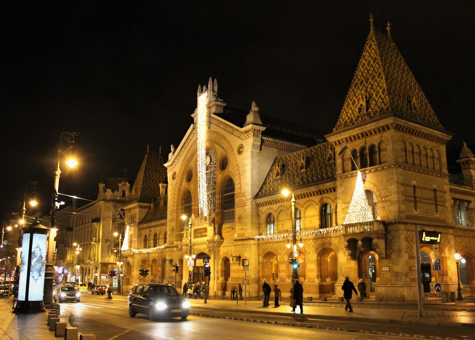 Walking steps took us to the well known Great Market hall, which was a beautiful 2 level building, all covered with lights from outside. But when you enter into the building, you’ll see that inside decorations weren’t less bright and shiny. The ceiling all was in lights, but the second floor was empty. Seems we came here already late, when most of the small markets were closed. This is also a great place, where locals go for food shopping or to eat something in place. This was similar to Christmas markets, just under the roof.