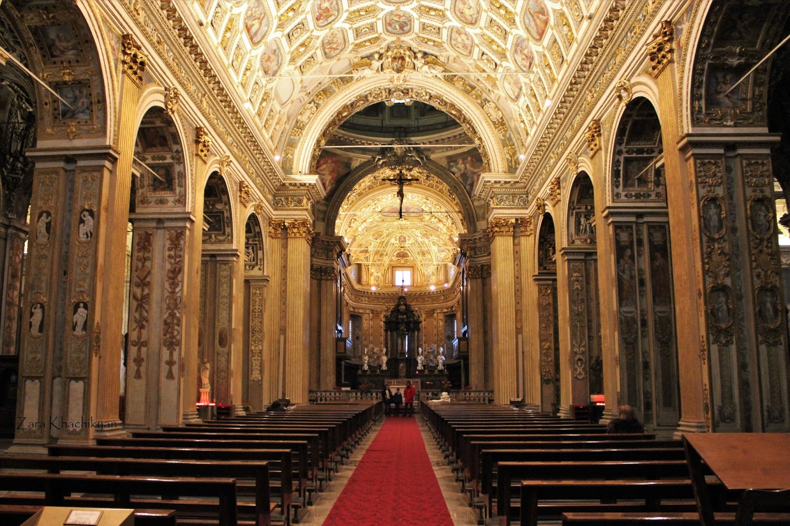 After spending some time here we continued walking on the direction of Science museum, but we were disappointed seeing it closed. but there was another building just next to it, that many people were entering. We were curious to see what’s inside, as the building was very simple with no any special architecture, any calling mark. But we couldn’t believe our eyes on what we saw inside. This was one of the hidden treasures, that we were happy to discover, an ancient church and monastery called San Vittore al Corpo. This was the first church that we entered in Milan after arrival. It was all like decorated with gold, all the walls and ceiling were decorated with paintings and carvings. On the both sides of the church there were small scenes from the Bible, such as the birth of Christ. This place was so quiet and so peaceful, that we could spend hours here. But it was getting darker, we were hungry and needed to find something opened, which was not easy on this day. And after long useful walks in the streets only McDonald’s could “save” us :)))