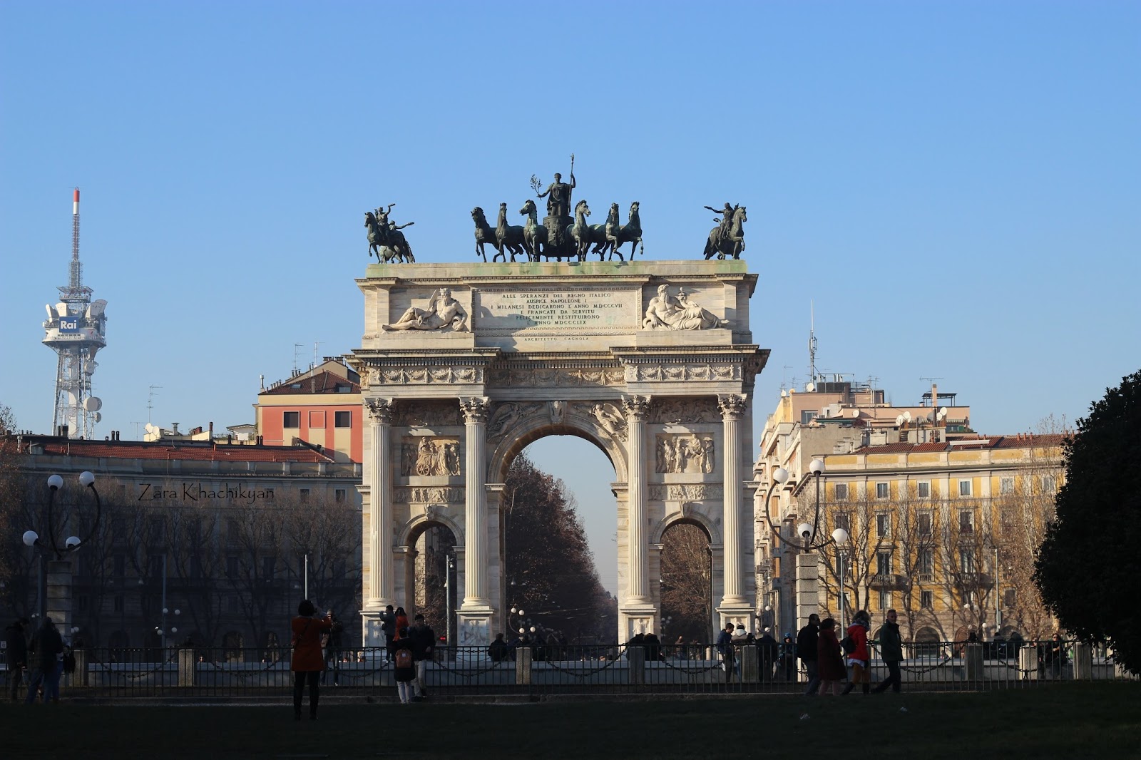 This all was inside the one of the most beautiful parks of Milan, called Parco Sempione. This is a large city park in historic center of Milan, which includes several small museums in the area, as well as the Arch of Peace that is the city gate of Milan (called also Porta Sempione) and on the other side was Sforza Castle. But between them there is a nice large park, with some statues and additional buildings. The complex includes the Arena Civica (officially called Arena Gianni Brera), which was opened since 1807 and can hold 18.000-30.000 spectators. As it was January 1, still almost everything was closed, and the arena as well. That’s why we couldn’t get inside to check the old stadium architecture from the other side.