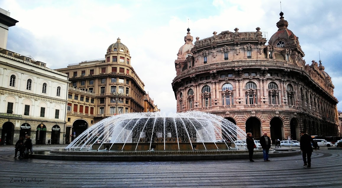 Continuing walking in the center of the city we came to the main square of the city, called Piazza De Ferrari, around which are sited the Opera and the Palace of the Doges. The square was prettified with a fountain, which was restored in recent years. Behind the fountain there was a beautiful architectural building called Palazzo della Nuovo Borsa, the first Italian stock exchange.