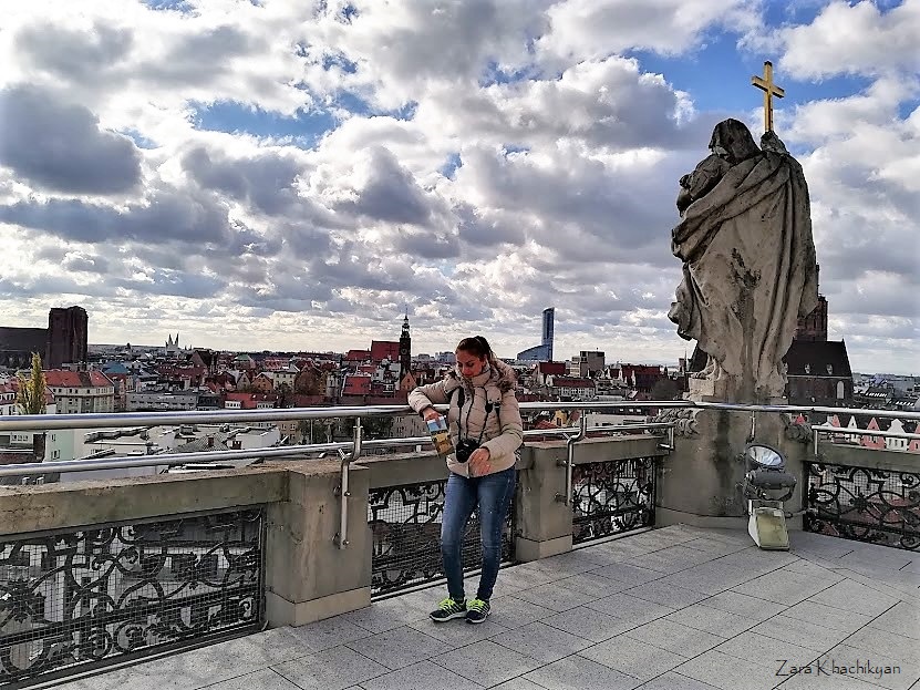 In the morning when we woke up, we were surprised to have a blue sky and a beautiful weather outside. Seems rainy days are over and we can enjoy better our day trips. Rapidly took all that we might need and started our walking journey. Of course, first place we went to check was again the center of an Old Town, that was all surrounded by bright and colorful buildings. The highest building standing in the center of Rynek (Market Square) was of course the