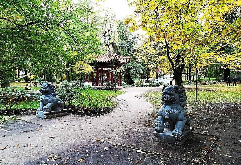 There was some area in the park made in Chinese style, with lion statues, pavilions and small lakes, and it’s called Chinese Avenue. There were some people here making selfies and also a girl that was having a professional photo session in Chinese style. In a moment you’d forget you’re in Poland.