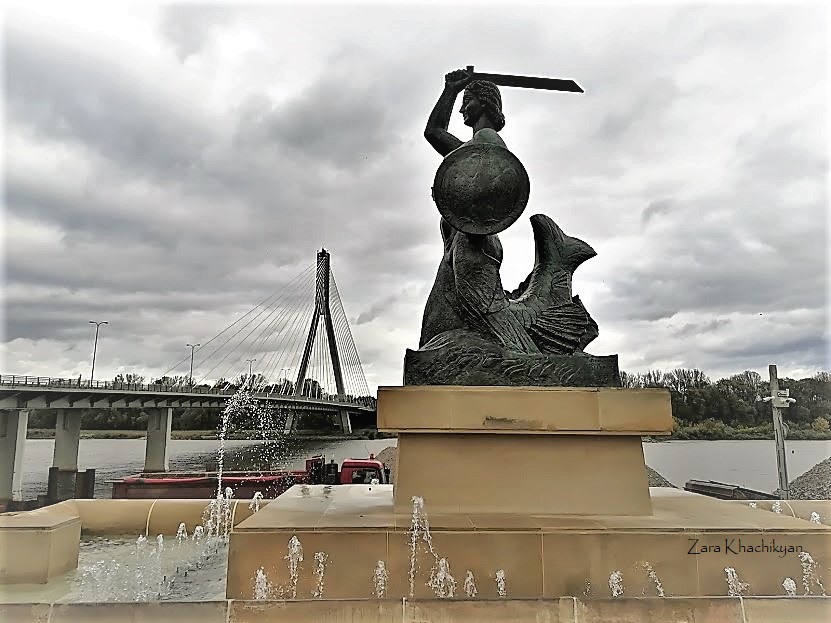 And here, just in a few minutes of walk from this center you’ll see the main statue of Mermaid of Warsaw (Syrenka Warszawska). There are several legends about the mermaid. Some of them says that the Lille Mermaid of Copenhagen is the Warsaw Mermaid’s sister and they went their separate ways from the Baltic sea.