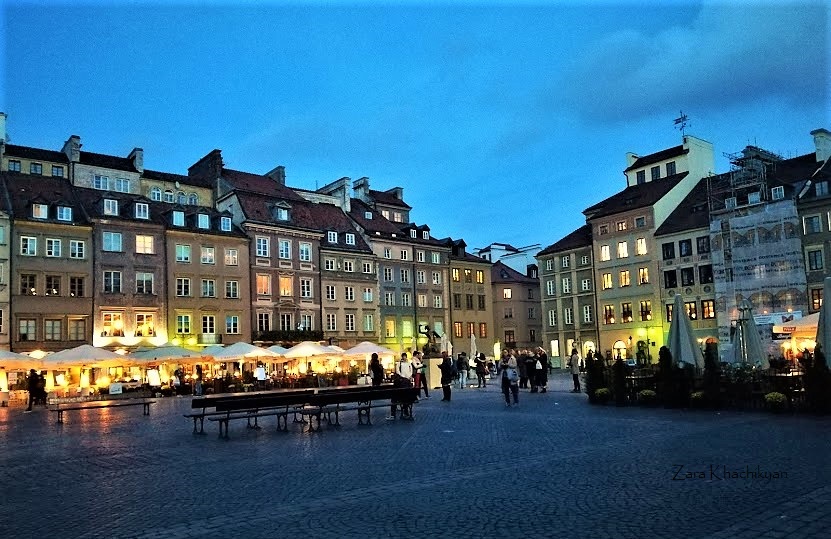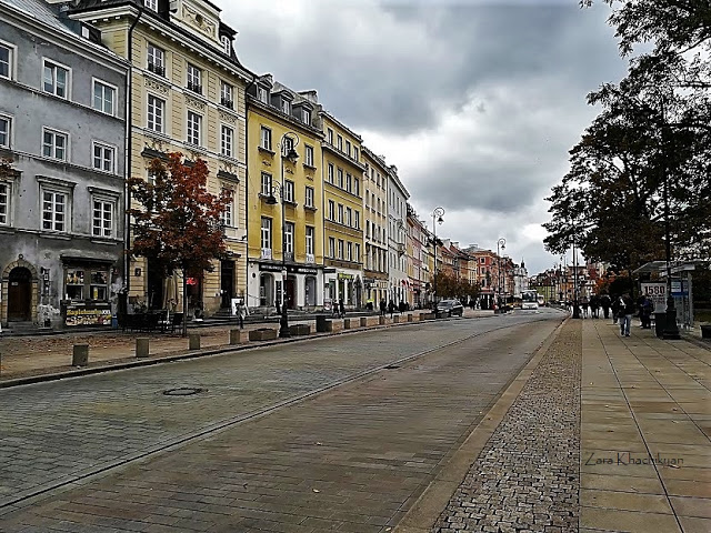 Near our place was a nice quiet Park Praski, where people were jogging, walking with dogs or just enjoying the silence. After crossing the Slasko Dabrowski Bridge over Vistula River here we are, in the Old town of Warsaw.