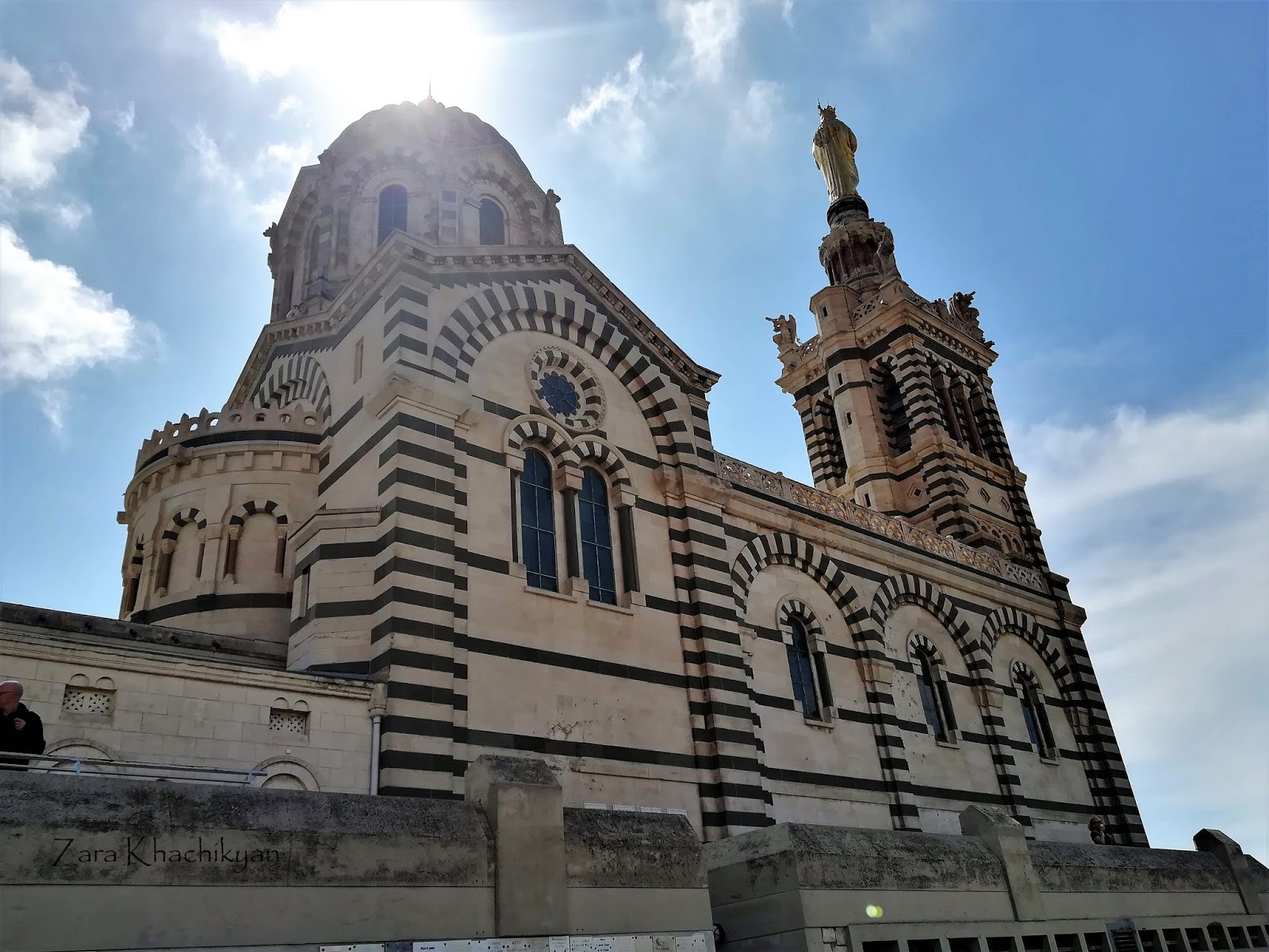 Unfortunately the Cathedral was closed when we arrived there, but even from outside to make a circle around was worth it. The Cathedral was huge, 142m long and is one of the largest cathedrals in France, with a capacity of 3000 seats. The unique architecture inspires with a dramatic entrance with two bell towers from the facade side. But it is easy to recognize the difference of styles used in the building. This place is a must see in Marseille for its magnificent look and impressive view to the sea due to its location. Some people (mainly Armenians, or the ones, who have any relation with Armenians) will recognize the Cathedral which was on the backstage of the poster of one of the most famous movies about Armenian Genocide “Mayrig”, made by French-Armenian filmmaker Henri Verneuil, where Claudia Cardinale and Omar Sharif were starred.