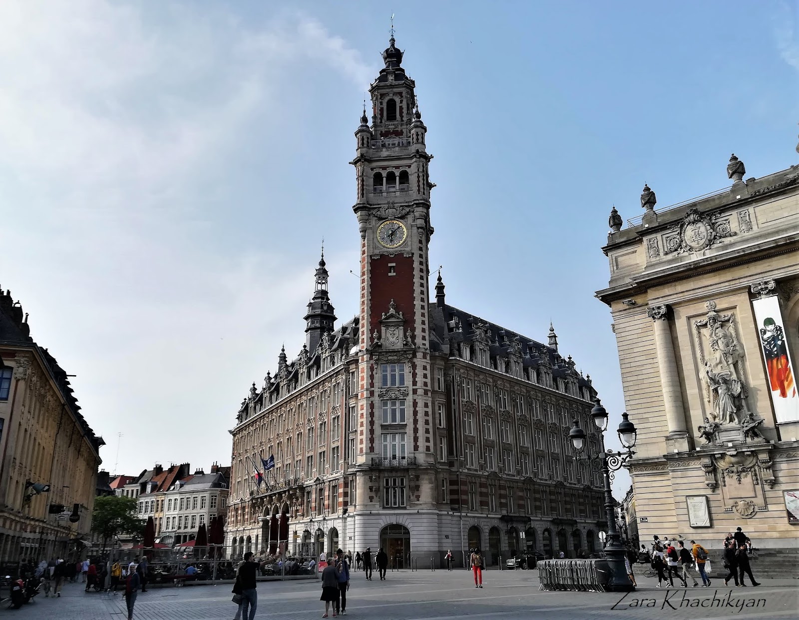Chamber of Commerce. It stands right next to the Opera house and is seen from far because of its majestic belfry. The neo-Flemish belfry is 76 meters–high and is decorated with four clock faces. It has 25 bells that regularly ring northern typical songs like Le P’tit Quinquin. Inside, a majestic entrance hall greets the visitors with its huge cupola decorated with frescoes. By the way, it turns out that it’s free to visit, so if you’re in Lille, don’t miss your chance to see the beauty from inside.