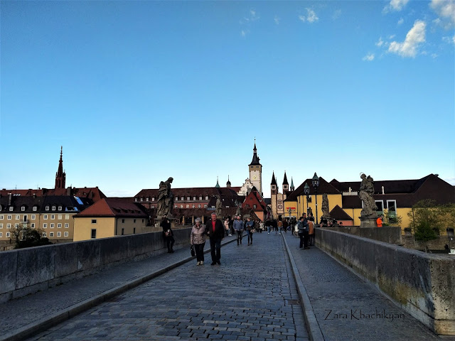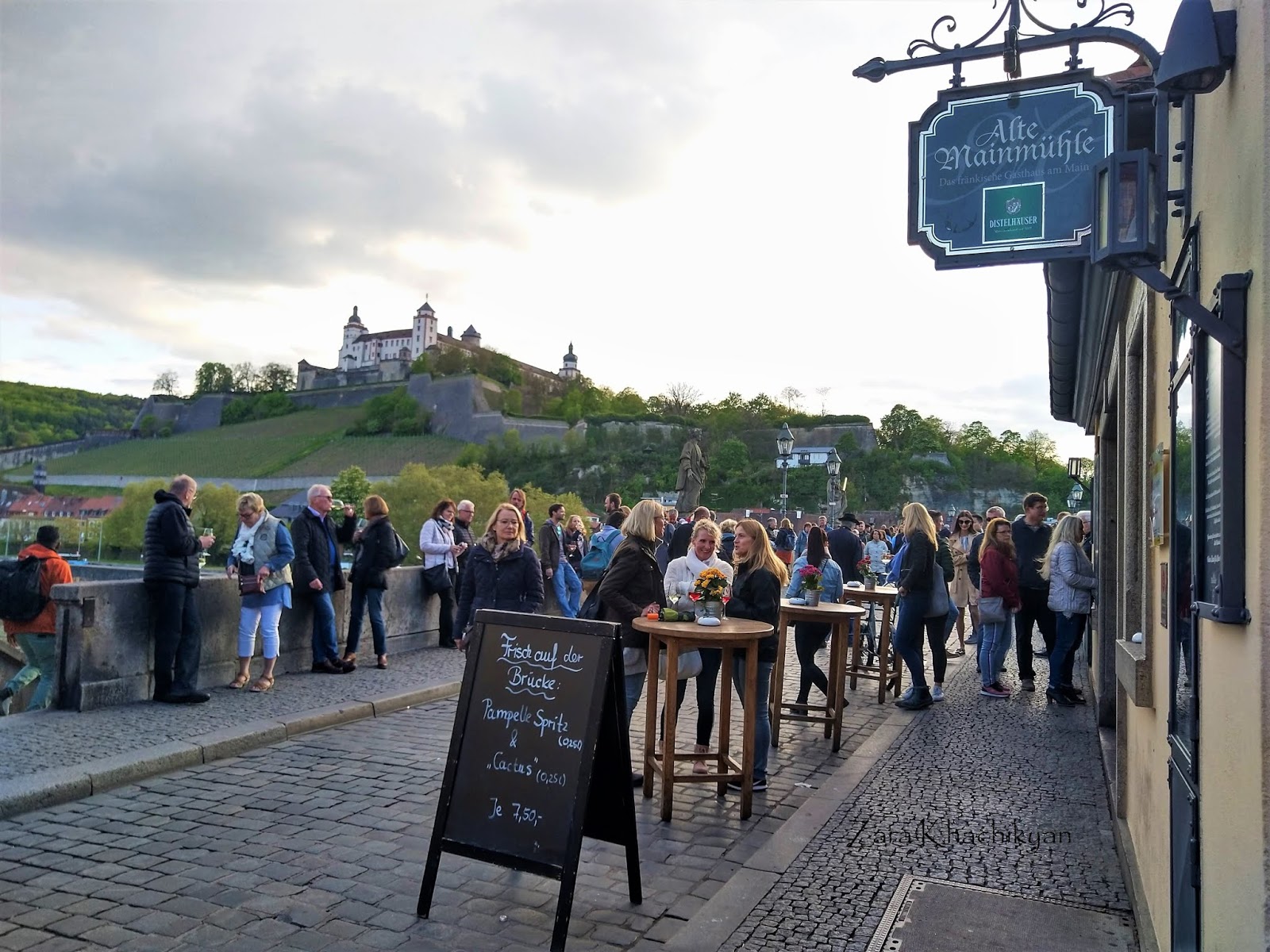 But the Old Bridge was also a place to drink famous within locals white wine. There was a small wine-shop right on the beginning of the bridge and you can see many people standing around with a glass of wine enjoying the sunset. This was definitely a nice place to come for the best views of dusk over Main river.