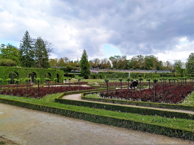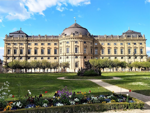 We continued our impressive visit to another rooms, but already without a guide. Still looking around with an open mouth! Time is up, they were going to close the palace and we had to leave also. But it was not the end of the day yet. Sun was shining outside and we had some time to enjoy the magnificent gardens of Residence. This was quite a big area perfectly shaped with green grass, nice flowers and trees. There were still flowers seen on the trees, but most of them already fell down. So if you’re planning to visit Würzburg and want to see it in flowers, better to plan a trip in the beginning of April.