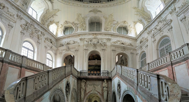 When Max Emanuel died at the end of February 1726, most of the main building was finished, but the complex had not been yet completed. Many of rooms and some installations were only done by his son and successor Karl Albrecht (reigned 1726-1745). When you are inside the palace, you may think that you’ll need a short time, but actually there are many rooms and each of them has so many details to take a look. And time will fly so fast you can’t even imagine. When you’re on the upper floor, come close to the windows and look outside. See the huge court garden with fountains and the pool? Yes.. that’s amazing!