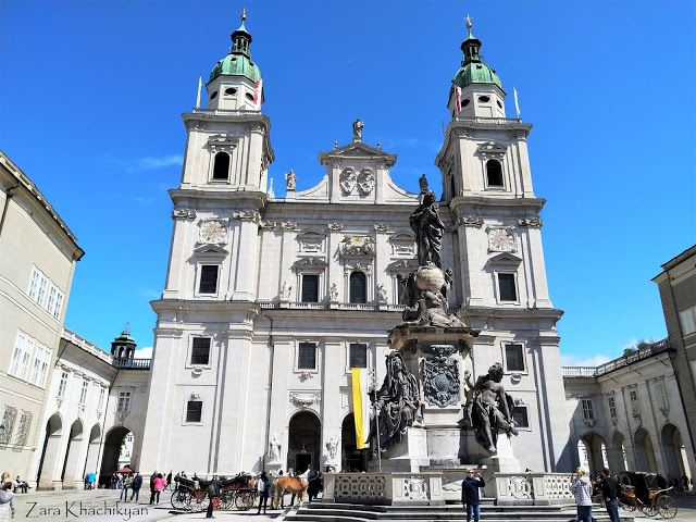 Here on the Residenzplatz, next to the Salzburg Residenz, there was Salzburg’s main domed Cathedral dating back to 17th century.