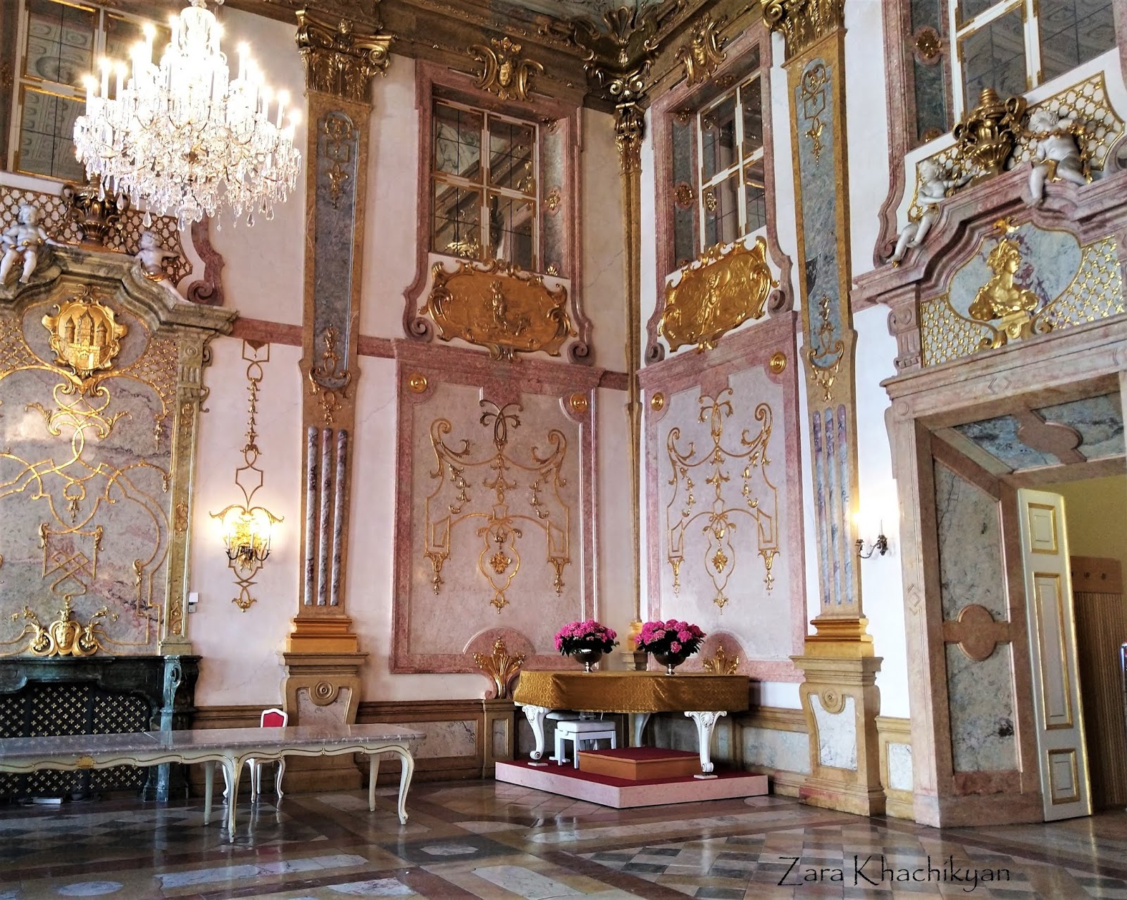 This was a large and bright cathedral, with beautiful carvings and frescoes on the walls and ceiling. But before becoming such an important landmark, it has a big history left behind. On the place of current cathedral there were 2 others before. The construction of the first one started in 774 by St. Vergilius and had 2 west towers. In 1167 the cathedral burned down. Then Archbishop Konrad III (1177-1183) built a vast Romanesque basilica with 110m length and had five towers. After a fire, it too was demolished in 1598. Current baroque building construction started in 1614 and is recognized by UNESCO as a World Heritage Site.