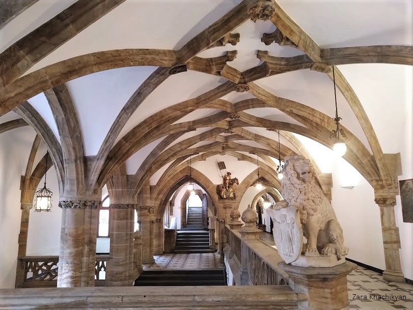 Actually it’s not easy to find this library even in the building, if you don’t take a tour. I was wandering inside the building until found it. But once you get inside the town hall, take a look on the signs on walls. Here you can see arrows showing some room numbers with mentioning important rooms’ directions. This way you can easily find the Library even if you entered from another side of the Town Hall. And why not, walking here won’t disappoint you at all. Look at its architecture inside! Don’t miss this marvelous place while visiting Munich!