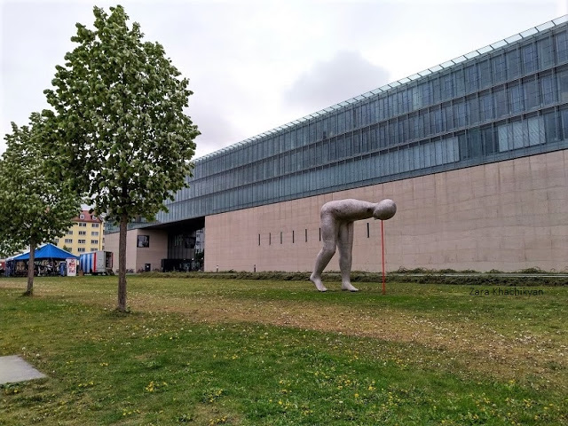 Tip: This is how the museum building looks like. Once you see this strange man statue with strange red thing (seems like a blood, no?), look a bit right and go down the stairs. By the way, look for the continuation of this red thing inside the museum π