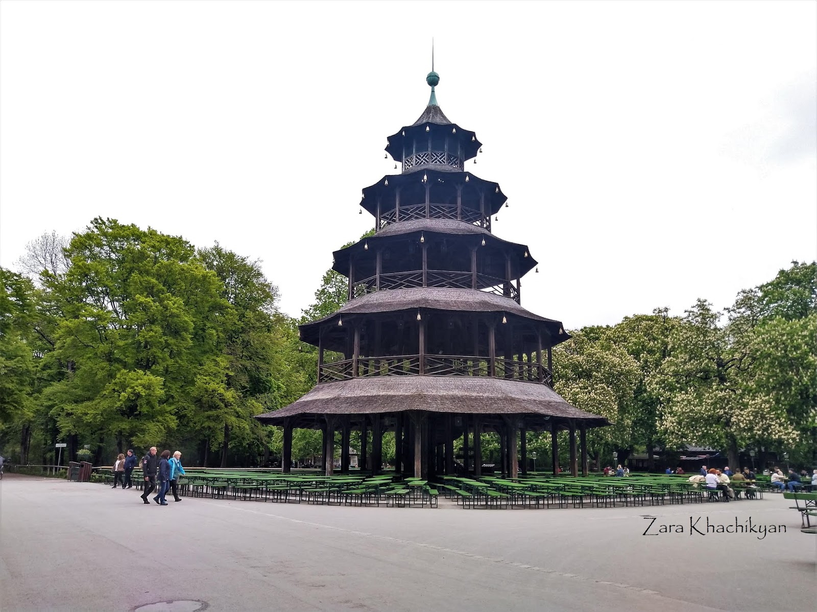 But perhaps this is not the most famous Japanese building in this park. There is a 25 meters high Chinese Tower designed from 1789. This is a pagoda construction in imperial-Chinese style, which was burned out several times over the years but it was always rebuilt true to the original. Around this tower you’ll see Munich’s second largest beer garden which has around 7000 spots. Just imagine the view here in a hot summer day!
