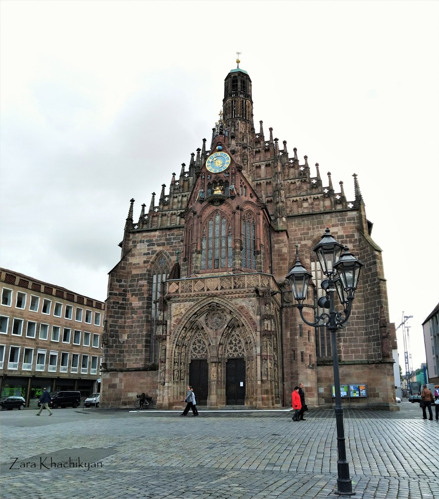 Here is also one of that 3 main churches of Nuremberg – Frauenkirche (Church of Our Lady). This is a Gothic catholic church dating back to 1362. In 16th century there were “running men” installed on the façade’s mechanical clock. Look carefully and you can notice the the figure of the emperor, who is surrounded by seven prince-electors. At midday you can hear the bells chiming and see the procession of prince-electors moving around the emperor. It is also famous for its grand interior, which we could appreciate only after having a hot coffee at a cute Italian restaurant nearby Cucina Italiana, as the entrance to the church was closed for visitors during regular service time.