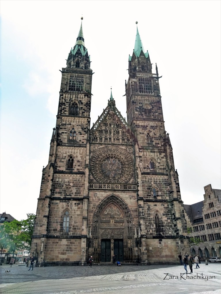 Konigstrasse (Königstraße) is the main walking street in Nuremberg leading from the main station into the old town. This is a busy street with the main tourist attractions all around, historical buildings, restaurants, shops. Walking up on the street we reached one of the most important churches of Nuremberg – St. Lorenz Kirche (St. Lawrence church). This was a medieval lutheran church of the former free imperial city of Nuremberg, dedicated to Saint Lawrence. During the II World War the church was badly damaged which was restored in later years. Construction works began on the church in the 13th century, but were completed only in 1477. The church is built in Gothic style and you’ll be amazed by its decorations and the interior. It has a huge three-part organ, which dates back to 1862. The main organ was installed in the 1930s and is one of the world’s largest organs! Just imagine, it has 12,000 pipes spread across 165 registers.