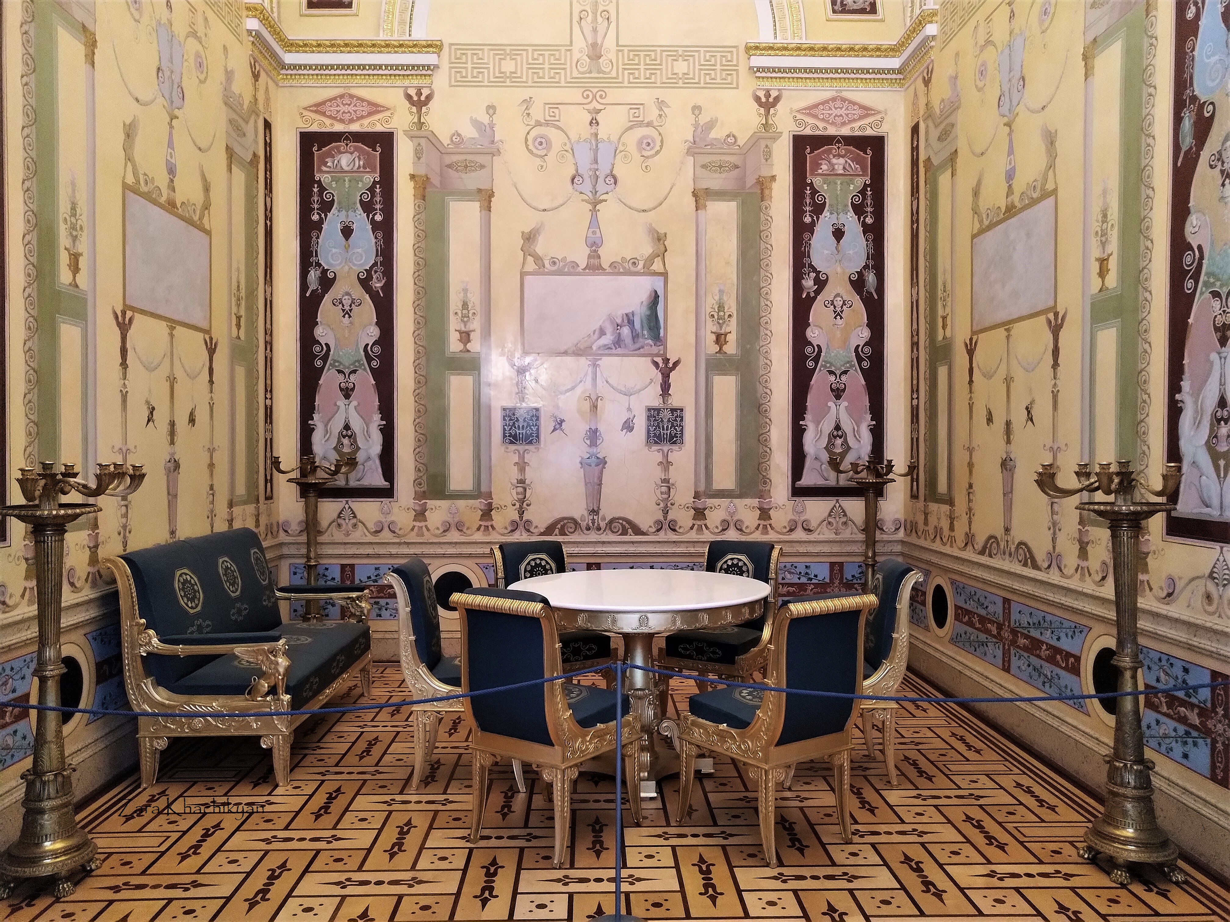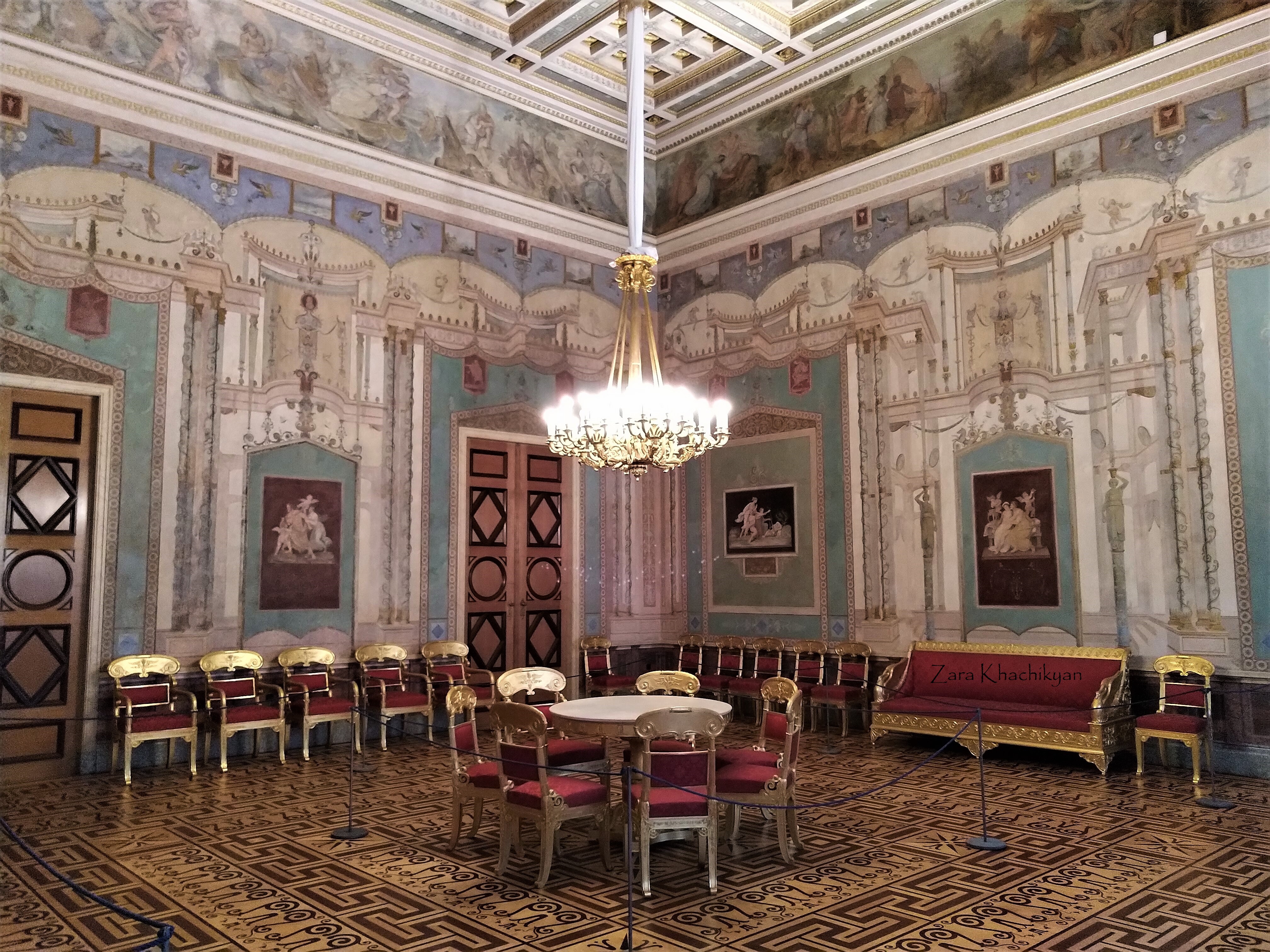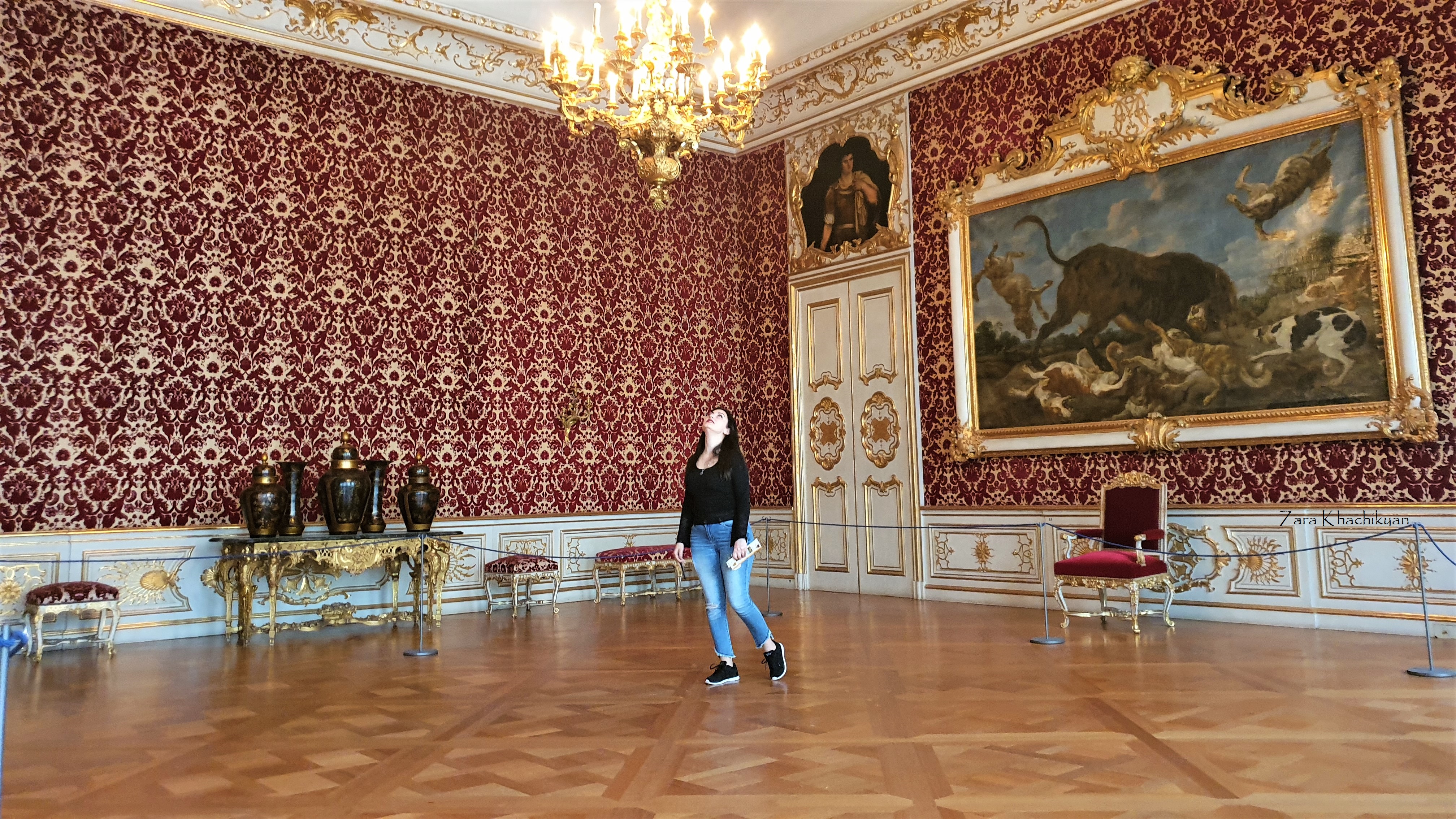 Electress’s Audience Chamber, which contained only a canopy, a throne and two commodes. A cute simple room which had 2 big paintings more like gently made carpets hanging on walls and few portraits.