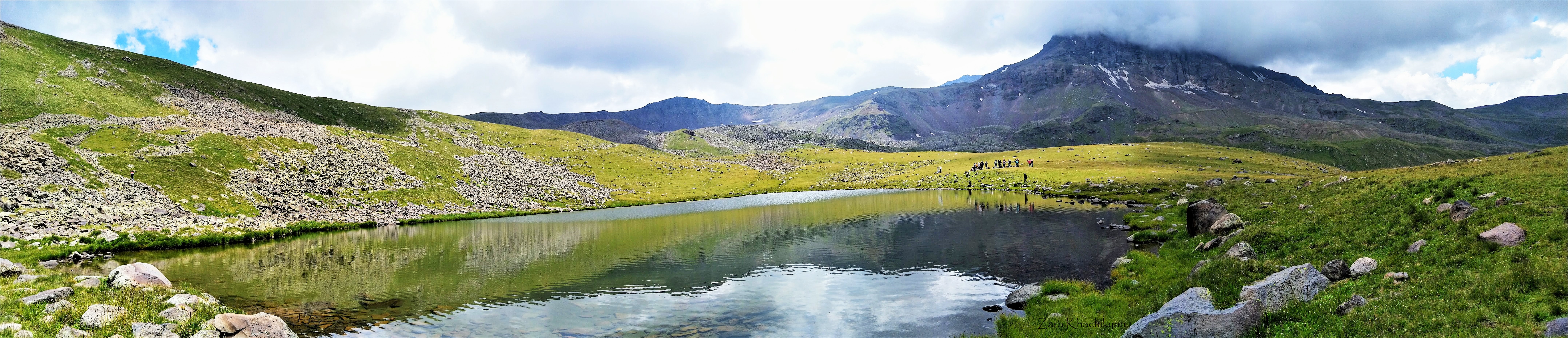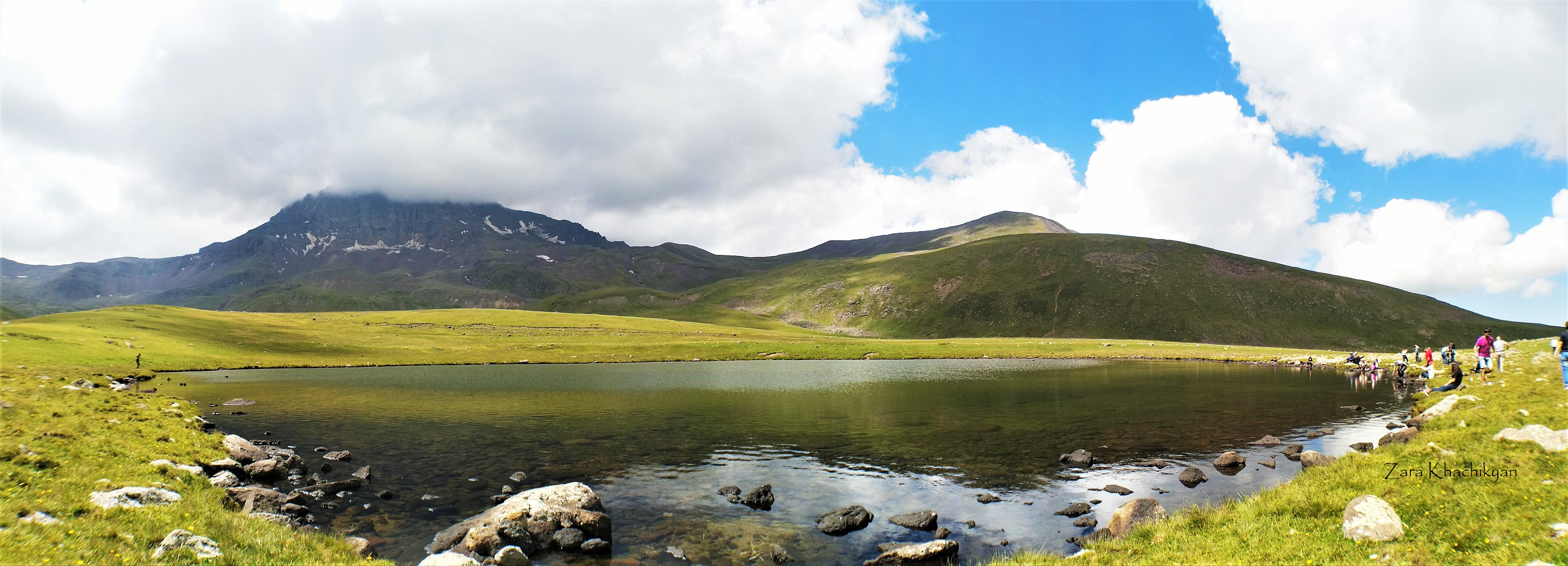 Here in Geghadzor we left our cars and moved to truck cars with open back (yes, don’t laugh 🙂 )) and started the second part of our driving. This time it was an off-road. The road was ok for usual off-road cars as well, but we were around 40 people, would be a bit hard to find enough cars for all of us. Another 1h of drive under the sun (yes, those who didn’t use that few minutes to put sunscreen cream were already burnt, but didn’t know about that yet) and we reached the first destination to stop. Actually it was just 9-10km, but considering the speed we drove carefully, it took about an hour. And here we are, next to the Rapi Lake, a natural mirror reflecting the mountain behind.