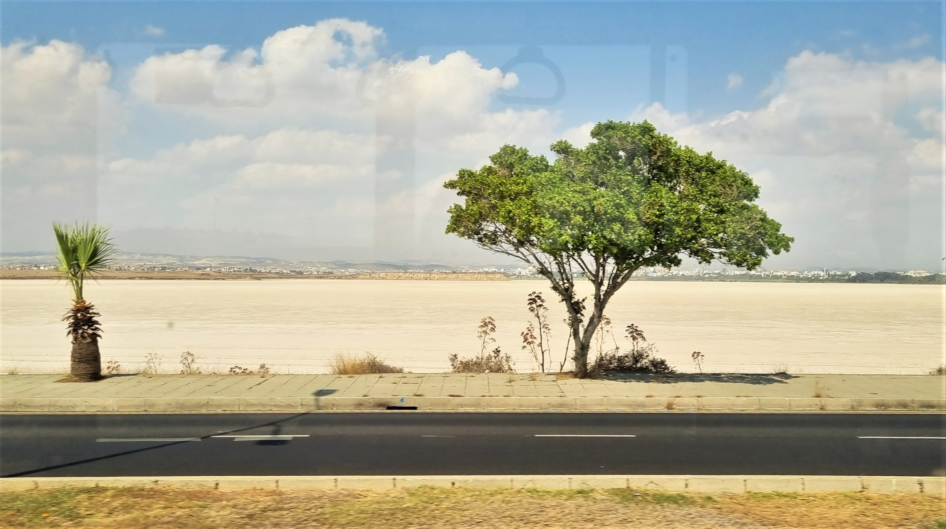This was our second trip to Cyprus and both times we were thinking of visiting the famous Salt lake, where periodically pink flamingos can be met. But again, this time too we didn’t have chance to go there. I could capture it only on my way to the airport, from the window of the bus (you can notice some reflections on the glass). The lake looked like a desert. Seems because of the heat the water was gone and only the thick layer of salt was left. However, it looked mysterious and I’m glad I could see it even like this, for some seconds.