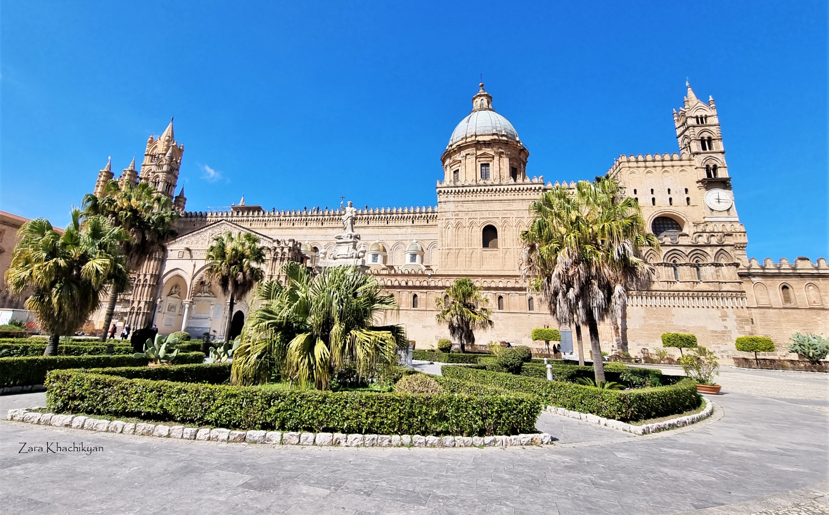 There was another impressive building that we passed by several times and didn’t know what’s it. This is the bad side of not planning everything in advance.. Every time we passed near this building, we saw lots of students around. Then on one of the walls nearby we saw “Liceo Classico” (High School) written and thought it’s a part of this building, so didn’t even try to enter. But later it turned out this was one of the most important buildings of Palermo, the Duomo, The Cathedral of Palermo. What a pity.. In the place of this Cathedral there was a Christian basilica dating back to the 4th century. Then a Muslim Mosque was built over it between 590 and 604. And finally at the end of the 12th century this Cathedral was built by the Normans as a re-converted Christian church and today is the largest Norman Cathedral in Sicily. The architecture is also different. It is a mix of Gothic and Medieval styles due to many modifications during centuries. The entrance to the church is free, but there are also other places you can visit inside, such as Treasury, Crypts with marble sculptured sarcophaguses, Royal and Imperial Tombs and the Terrace, which is said to have the best view of Palermo. For visiting all of this places you shall pay for each or buy a combo ticket for all visits.