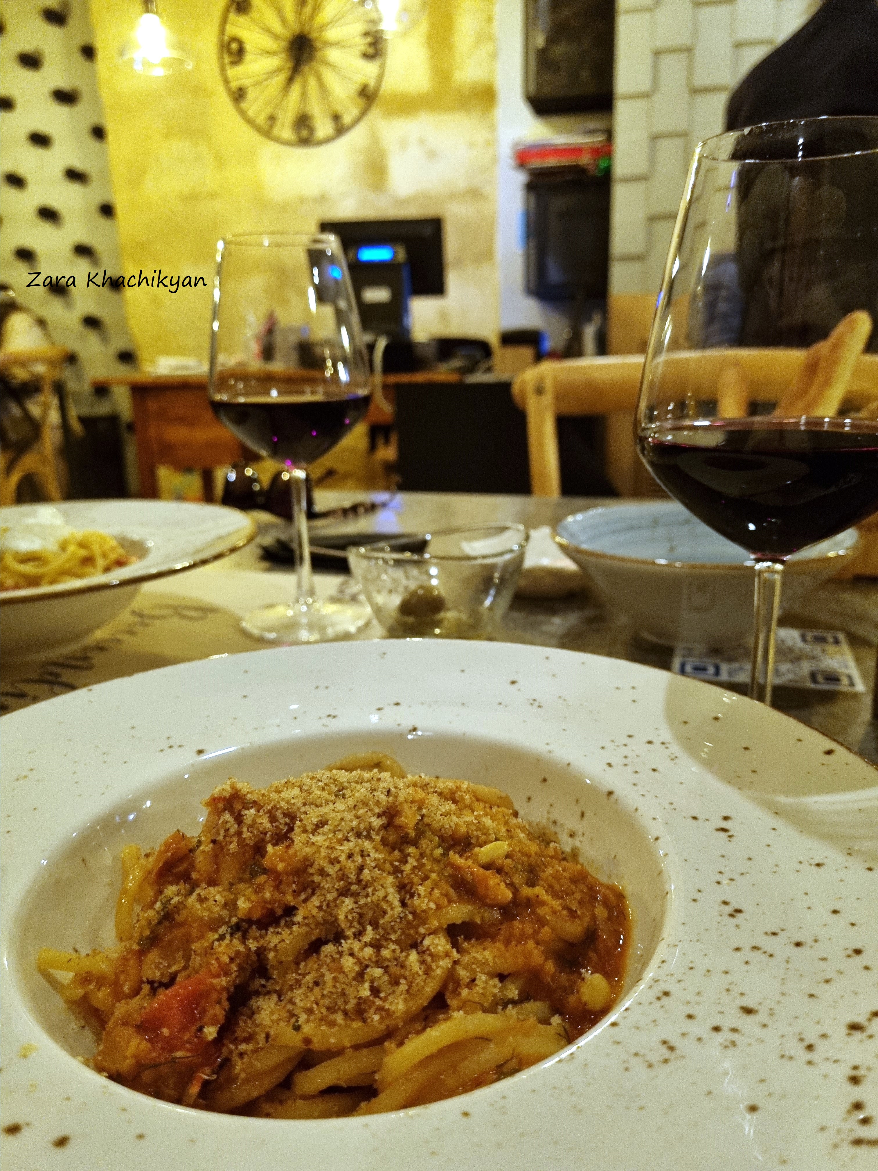 Finally we saw a restaurant, which was opening its doors and getting ready to invite hungry people like us. We got in quickly and asked for the menu. The waitress was very kind, she brought a menu but also informed us that the cook has not arrived yet, so if we want to order something to eat, we shall wait a bit more. Of course, we can survive a little more, not a problem, haha. We selected the food to order and asked for some wine as well. The lady offered a local wine, called “Nero d’Avola”. I heard about this wine before but haven’t tried. And I though – “this is a sign”, and agreed with her suggestion. And didn’t regret. That was really a good wine, perfect for the evening. The pasta we ordered also wasn’t bad. The restaurant was almost empty. We were enjoying the meal with the wine without rush. When we finished and asked for the bill, the girl serving us came and asked whether we want to have a small excursion in their restaurant. It was unexpected for us, but it turned out that previously this place was an old winery storage. Even until now there were rooms where they keep wines in a special climate, they kept and demonstrate big barrels, in which they used to keep wine as well. Also we saw a part of an old aqueduct system, which was connecting the restaurant with the church next to it. This was the last “cherry on the cake” of our day and we went to the hotel quite satisfied after a nice dinner in such an interesting place we couldn’t even imagine.
