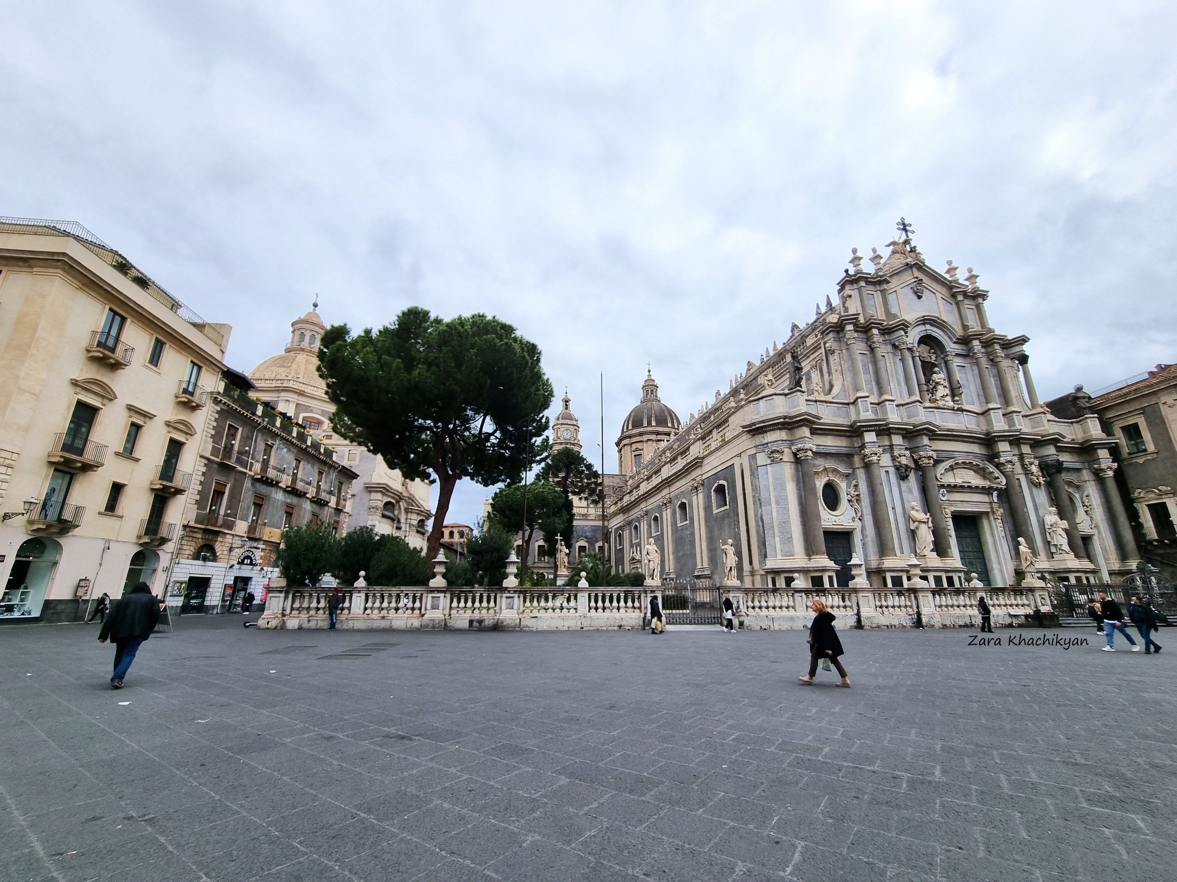 In the morning we still had some time before our next train adventure and walked towards the Basilica di Sant’Agata, the massive cathedral on the Piazza del Duomo. This is a Norman Cathedral dating back to late 11th century, dedicated to virgin and martyr Sant’Agata, the patron saint of Catania. The Cathedral is also known as Catania Cathedral or Duomo di Catania (it.). This is a Roman Catholic Cathedral, which was the seat of the Bishops of Catania until 1859, and after became the seat of the Archbishops of Catania. The cathedral was periodically damaged during earthquakes, volcanic eruptions, fire. But the main destruction happened during the major earthquake in 1693 and only ruins left after. After each damage the cathedral was restored in its original gothic style.