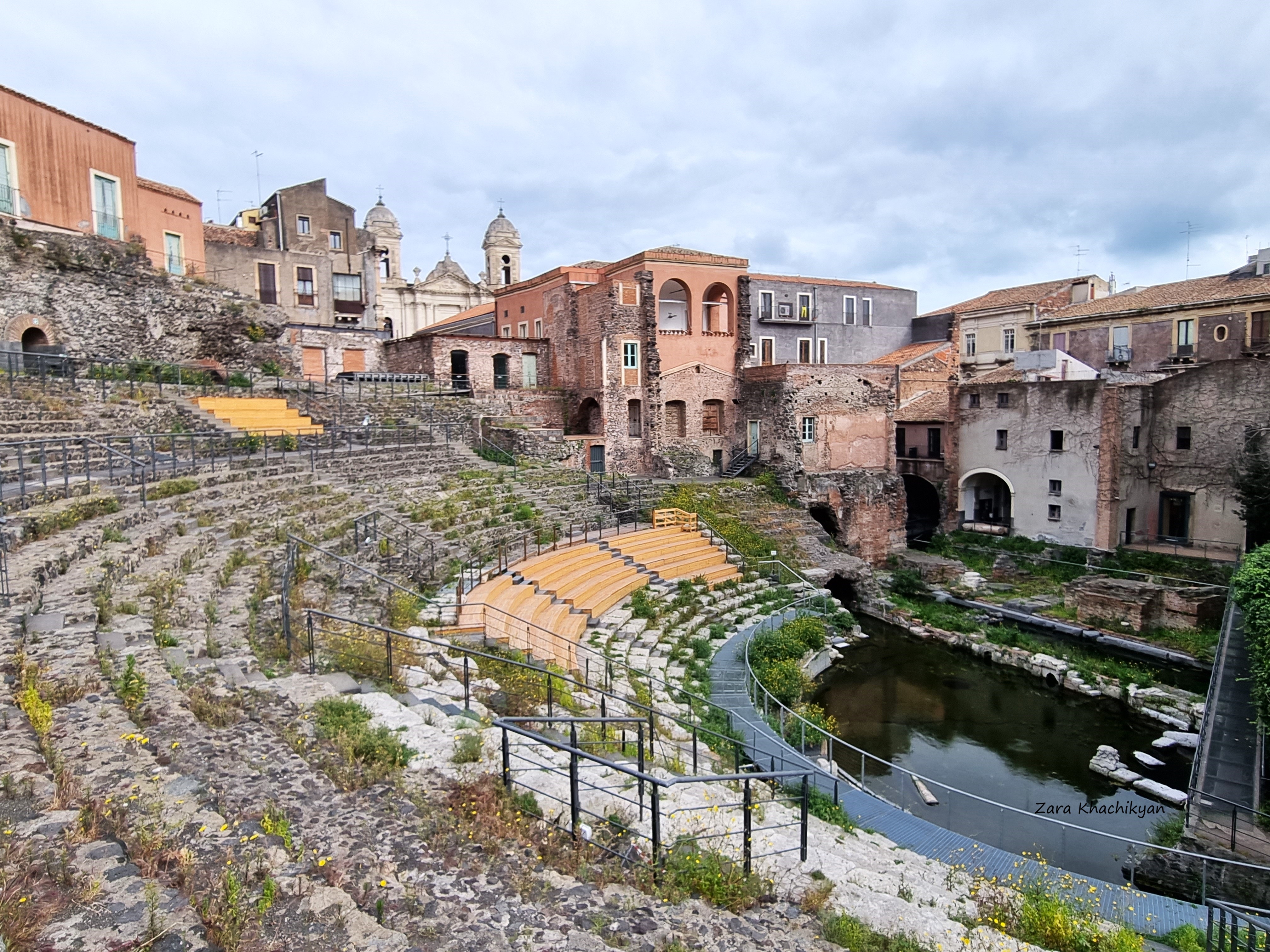 But let’s go to discover historical treasures of Catania. The first one in the list was Roman Theater (Teatro Greco) from the 2nd century A.D. The Greek-Roman Theater and the nearby Odeon are located in the historic quarter of Catania. It consists of a larger theatre and a smaller semicircular theatre (Odeon). The main theather’s Cavea (the auditorium) section could accomodate around 7.000 people. Because of the different volcanic eruptions and earthquakes, in time the ground level has dropped and now the lower part of the building, especially the orchestra area, is washed by the Amenano’s waters. Odeon is placed higher than the theater. Its capacity is significantly less than theatre’s one and can accomodate a small audience of about 2.000 people. The building was used for performances of music and poetry and even today the Odeon is used for performances of summer shows. Some of the items that were discovered during excavation works are also displayed in a small museum inside, which you will pass before exiting the site. Don’t miss a visit in this archaeological ruins as it’s a nice break from the hustle of the city. Yeah, and it is part of the Parco archeologico greco-romano di Catania!