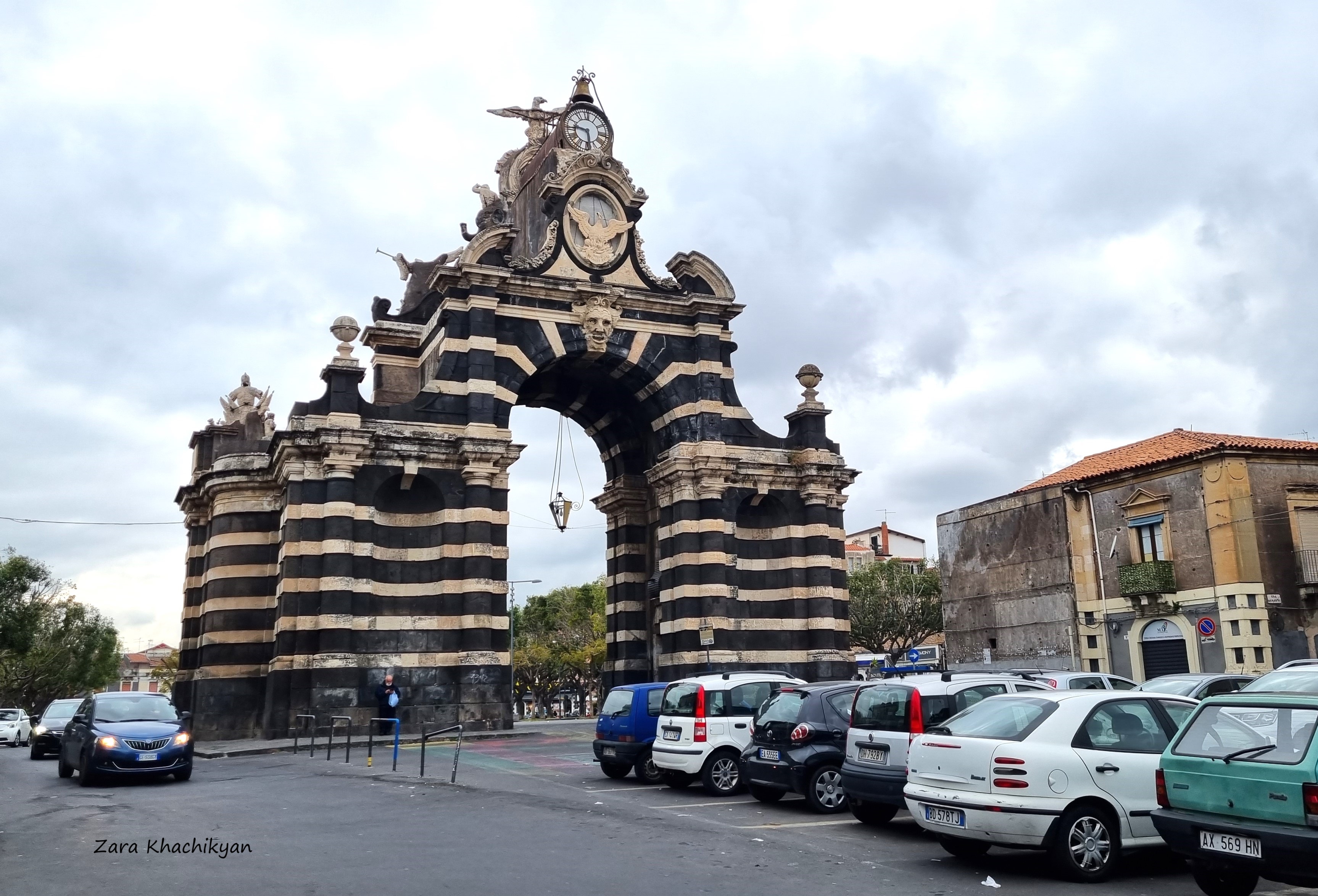 After visiting historical and cultural sites it’s time to just stroll on the streets of Catania and see what they can show us else. We started from the Via Garibaldi, which starts from the Piazza del Duomo. So we just started to walk and look around. Honestly, didn’t see anything interesting that would cought our attention. But at the end of the street there was a majestic Porta Garibaldi standing, a triumphal arch built in 1768. It was built to celebrate the marriage of the Bourbon king Ferdinand I of the Two Sicilies to the Austrian princess Maria Carolina d’Asburgo-Lorena and originally was called Porta Ferdinandea. As you can see, the monument is built using black and white blocks, from which white stones are brought from Siracusa, while the black ones are local, used from lava stones. There is a big clock on top of the monument today, but originally there was a medallion with the portraits of the two kings. On top of the clock, as well as on the other side of the arch you can see the rising phoenix, a symbol of rebirth of Catania and its people after several eartquakes and eruptions it passed. Even under one of those phoenixes you can see an underlined sentence saying “Melior de cinere surgo“, which means “I can born again from the ashes even more beautiful”. Very impressing, indeed. Pity didn’t take a picture from the other side of the arch, so I could show you the monument from all angles.
