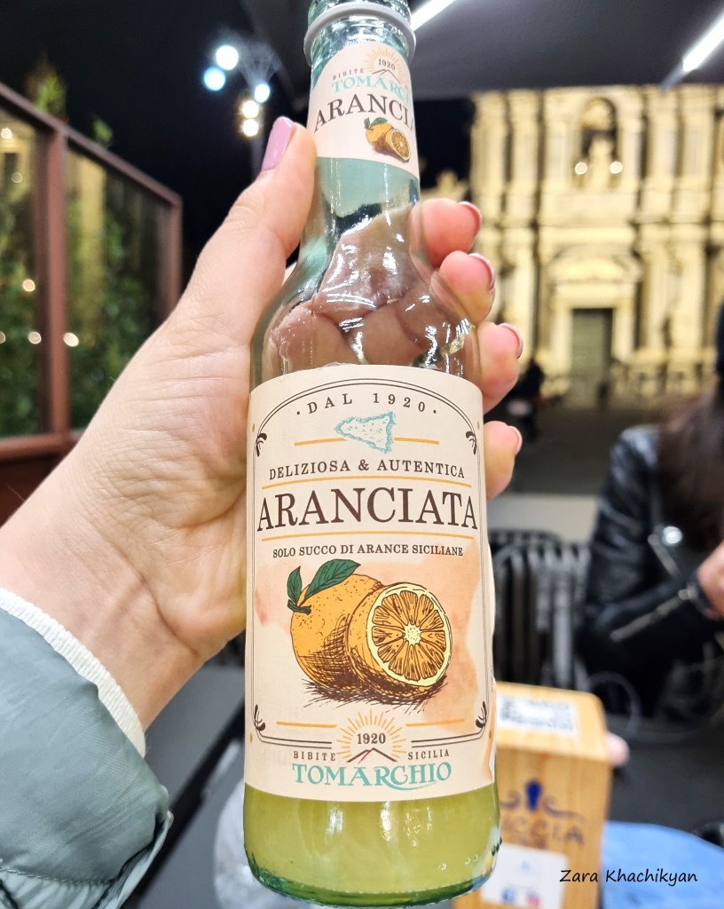 Now it’s time for dinner, maybe a light one, because we had a pizza for lunch, as this is how it is done in Italy, one whole pizza per person. We were not starving but had to eat something. And what else if not trying some seafood? We found a small restaurant Siccia just on the Piazza del Duomo, where they were serving fried seafood mix, with a view of Cathedral. We took it together with local lemonade called Aranciata (be careful while ordering it in any other places in Italy, even if it is written like that in menu, you might be served with usual Fanta, as it is “made” from orange, and Arancia means orange in italian!). The light dinner with lemonade was very tasty and satisfying. And after some more walks in the night streets of Catania we went to our room to sleep. That was a tired day, but we still had an unfinished thing to do here.