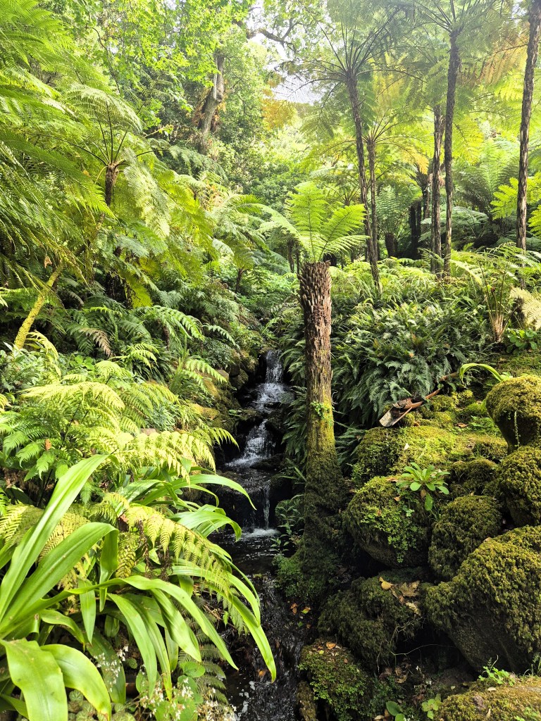Little by little I walked towards the Gardens, which was like a huge mysterious forest, full of lakes, especially in the area called “The Valley of the Lakes”, adjacent buildings and viewpoints. This botanical orchestra was curated in the 19th century by King Ferdinand II, who fell in love with trees, and collected species from Japan, North America, Australia – planting them here like postcards from across the world. The only sounds here were birds, your own breath, and sometimes – nothing or no one at all. It was only you walking on the paths under the shadows of tall green trees, going up and down. The highest sound of your breath you could hear while crawling to The High Cross (Cruz Alta), from where the most spectacular view to the Sintra was opened. Even the waves of Atlantic ocean could be seen from this height.